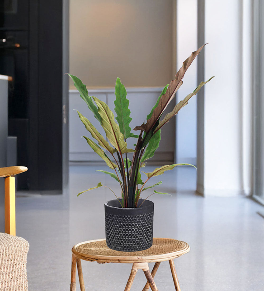With its dramatically serrated, upright leaves and deep purple undersides, the Alocasia Lauterbachiana is the kind of plant that turns heads. A true statement-maker, this striking beauty brings tropical vibes to any corner of your home – perfect if you’re after something a little less ordinary.